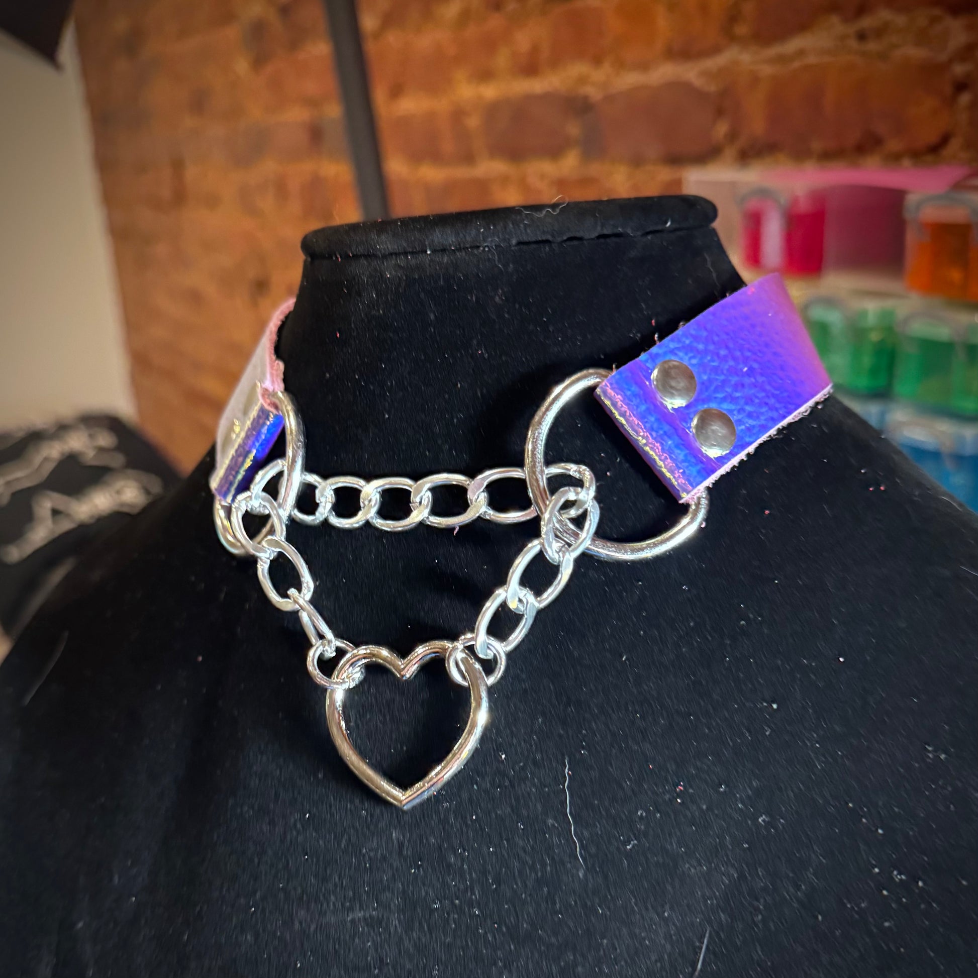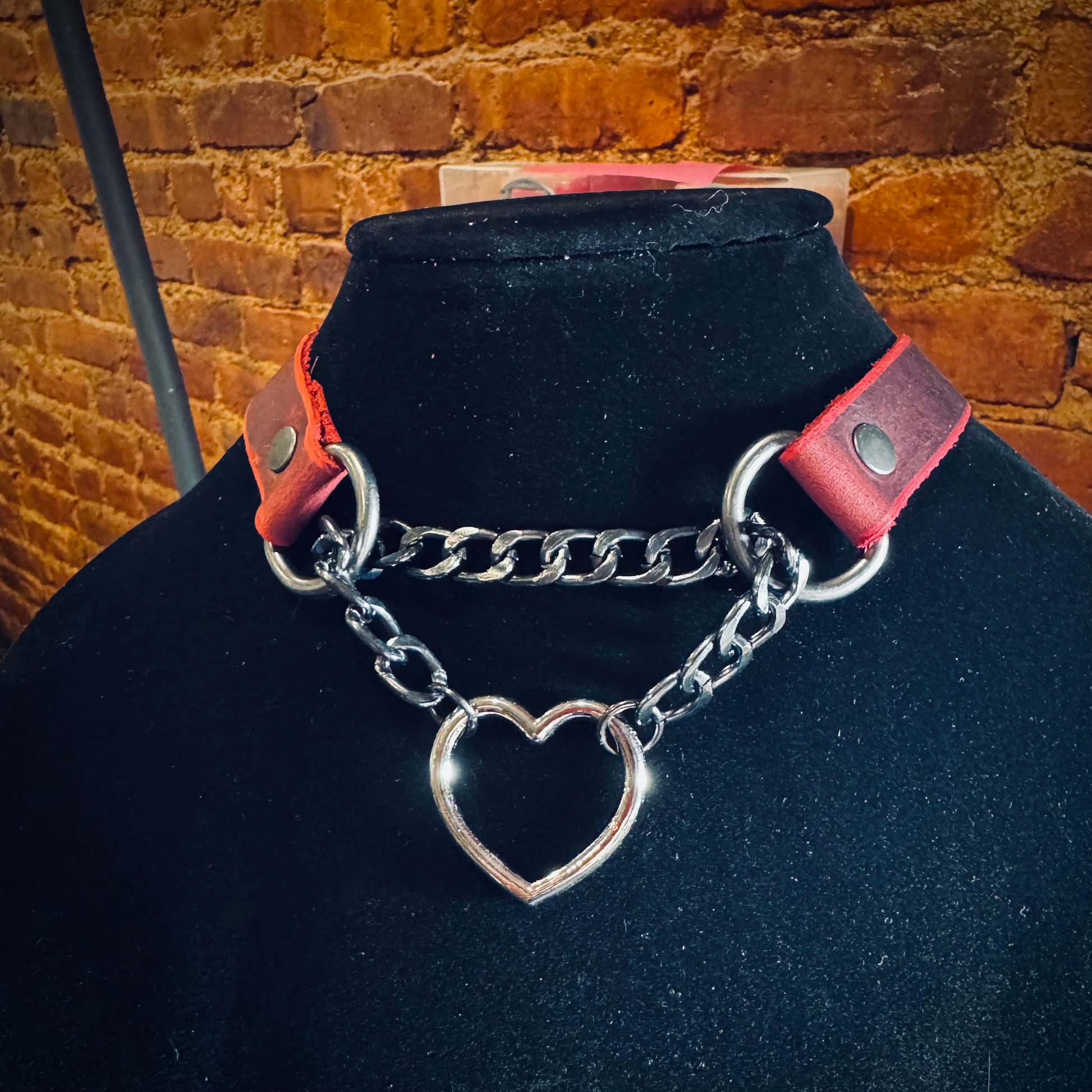 This super cute variation of the classic martingale collar is available in multiple colors, and features a silver heart-shaped ring to tug on!