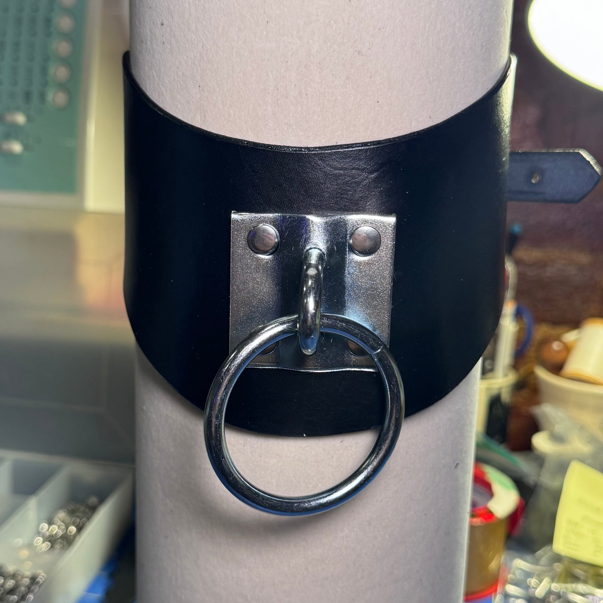 This beautifully simple posture collar is cut, dyed, and finished by hand in your choice of black or oxblood. The edges have all been carefully beveled and burnished for comfort. It also features a single heavy duty ring in front as an attachment point.
