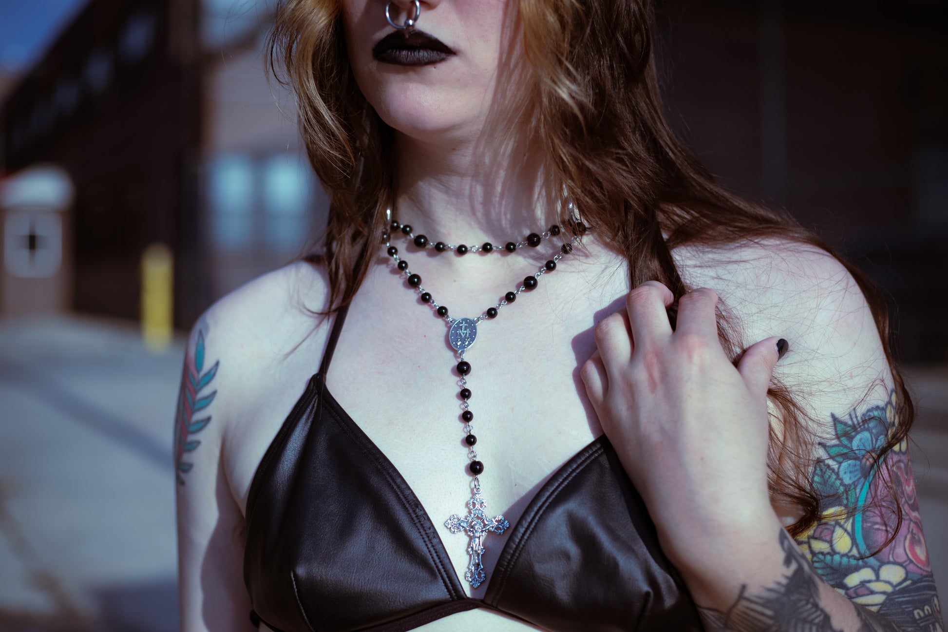 Pre-order for the newest version of the rosary martingale collar! This version features all black beads on a delicate chain, with an oversized crucifix. Pre orders will ship in 4-6 weeks from purchase.