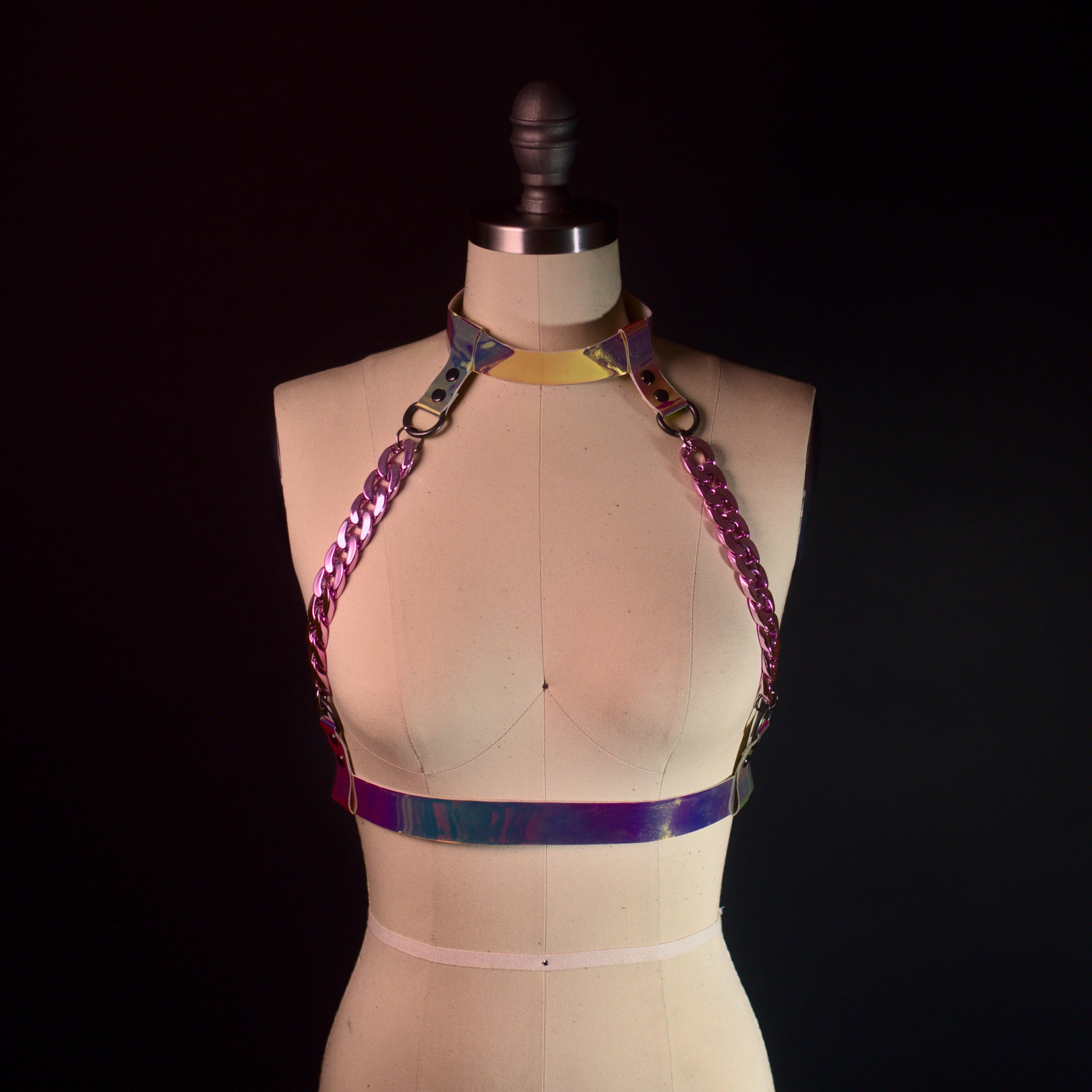 The Lovers Harness (Holographic Vinyl with Pink Chain)
